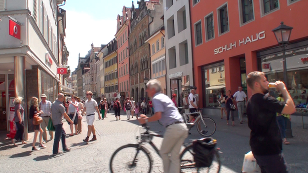 一眼望去,康斯坦茨的街道上停滿了掛著瑞士牌照的小汽車。在最擁擠的商店裏,一聽說話就知道,顧客大多數來自瑞士。