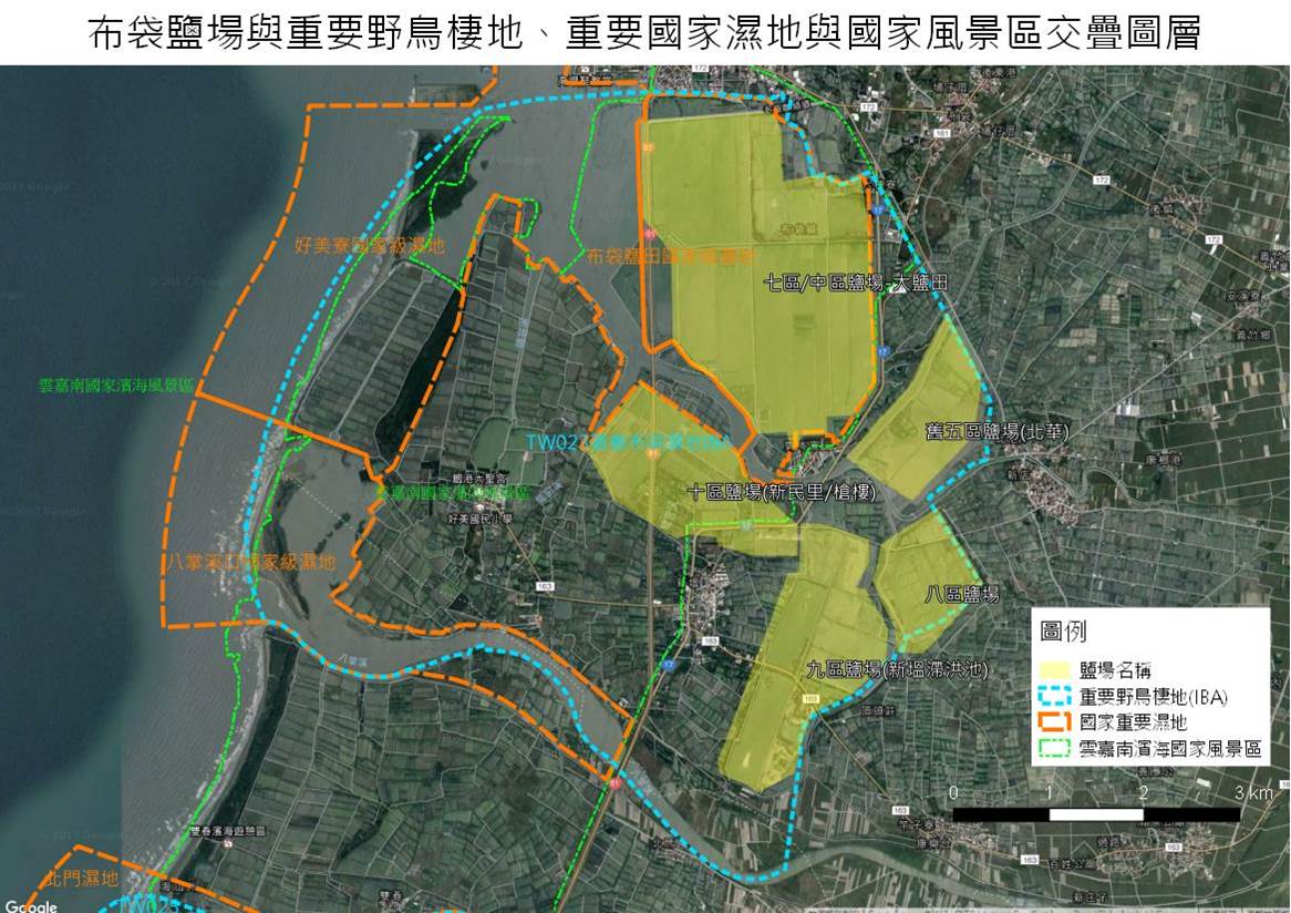 生態保育者洪貫捷(紅冠) 指出,布袋鹽場區域內有大濱鷸、東方白鸛、黑面琵鷺等國家一級鳥類。國家重要濕地與國家風景區交疊,有一些鹽田並未列入保護區內,被規畫為綠能開發區,是造成衝突的關鍵問題,