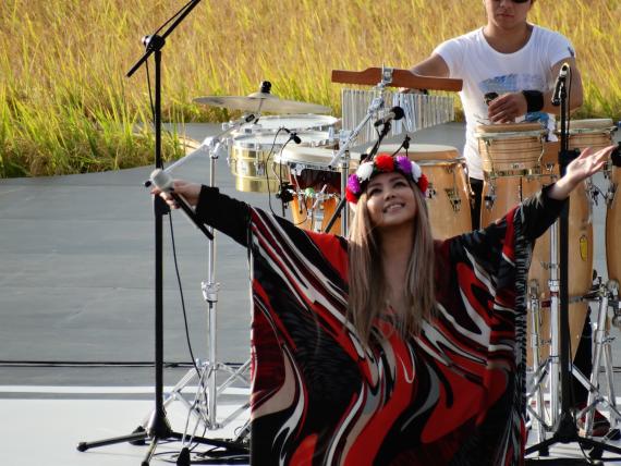 天后張惠妹在天堂路金黃色稻田裡開心演唱說:這是全世界獨一無二的舞台