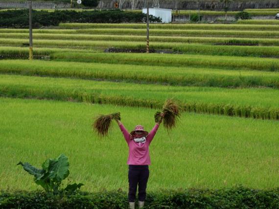 池上有機米產區以人工除草,重現台灣四十年前農村景致
