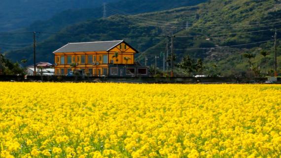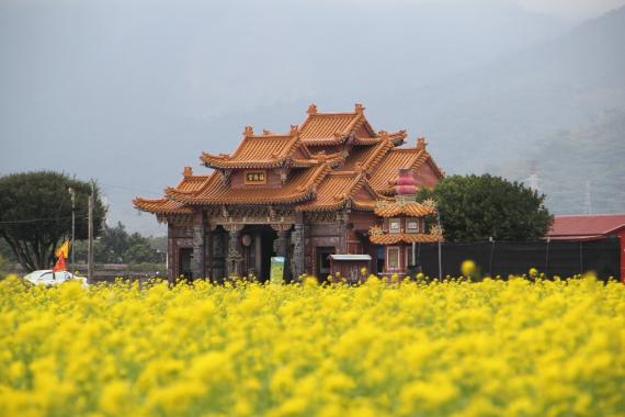 金黃油菜花海中的池上土地公廟