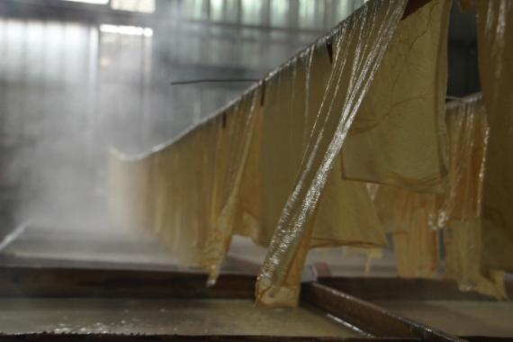 豆皮晾乾中