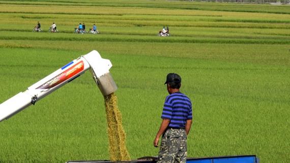 天堂路上農民割稻與伯朗大道騎單車遊客一起入鏡(天堂路農民歡喜收割 迎接秋收音樂祭到來)