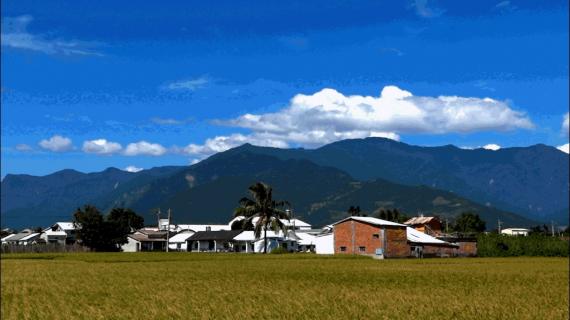 池上新興村的民房與南橫山景構成一幅靜謐的風情畫(池上風情畫)