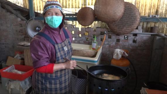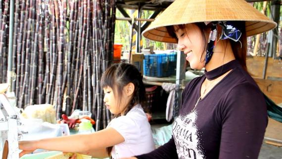 她是從越南遠嫁捯關山月眉來的媽媽,生了兩個男孩後,先生很不幸的就因為癌症病逝,她為了兩個小孩的升學及生活費,在台九線旁賣甘蔗玉米。