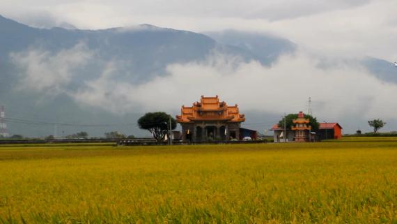 金黃稻浪中的土地公廟