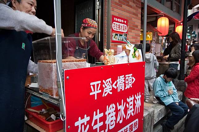 在平溪老街裡一間小小的店,價格親民,一份份量十足的花生捲冰淇淋50元有找,逛街逛累了可買一份當甜點來吃。冰淇淋除了常見的芋頭跟鳳梨口味外,還有比較少見的黑芝麻,帶有淡淡的芝麻香氣,想嘗鮮的朋友可以試試。