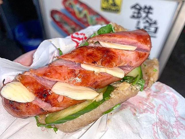 鐵道熱腸基本賣香腸、大腸包小腸和雞排等三樣東西,如果肚子比較餓可以買大腸包小腸,碳烤過的香腸和炸過的糯米腸,香氣四溢,而且加到滿的大蒜和香菜,讓整個美味更升級!