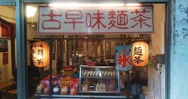 主要賣的是麵茶和杏仁茶,也賣碰餅和油條等古早點心,還有比較另類的碰餅+太白粉的組合。整間店很有復古味,在這裡吃麵茶就像回到那個常常吃麵茶的學生時代一樣,別有一番滋味~夏天時節來玩時,喝一碗清涼的冰麵茶,既消暑又充饑,冬天則可喝碗熱麵茶,淡淡芝麻香和堅果香,溫和順口也有飽足感,每口都是懷念的滋味。