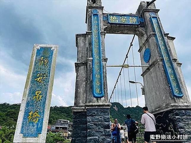 歷史悠久的靜安吊橋,建造於民國36年,一開始是為了方便運送煤礦,後來採礦停止後,就改為行人通行的交通便道。靜安吊橋橫跨基隆河,全長128公尺,這座橋在2021年經過重新整修後又再度開放,這個顯眼的藍白色吊橋也成為許多人拍照打卡的景點。