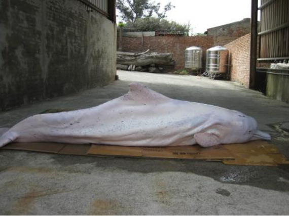 台灣第三隻成功辨識的白海豚,編號TW-03,綽號T先生,2009年9月被發現擱淺、死亡。(資訊、照片皆由台灣媽祖魚保育聯盟提供)